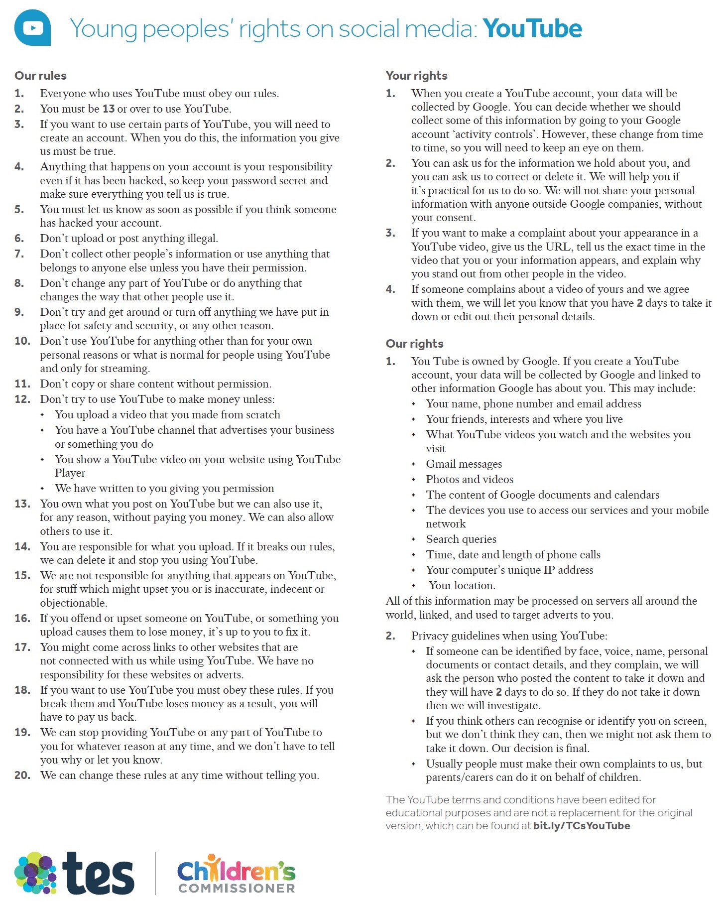 This page provides an overview of Social Media Terms and Conditions for Young People using Instagram, Snapchat, WhatsApp, YouTube and Facebook...